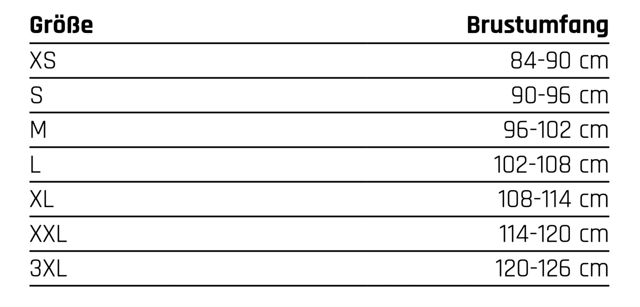 When placing your order, specify your clothing size and the measurement range of your biceps circumference, e.g. L27-34.